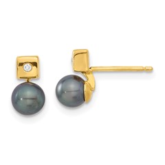 14k Black FW Cultured Pearl and CZ Earrings