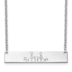 Sterling Silver Rhodium-plated Family Stick People Small Bar Necklace