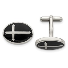 Stainless Steel Polished Black Enamel Cufflinks