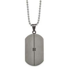 Stainless Steel Matte/Antiqued 0.04ct.tw Diamond Dog Tag Necklace