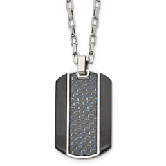 Stainless Steel Brushed and Polished Black IP Blue Carbon Inlay Necklace