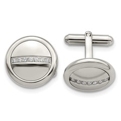 Stainless Steel Polished with CZ Circle Cufflinks