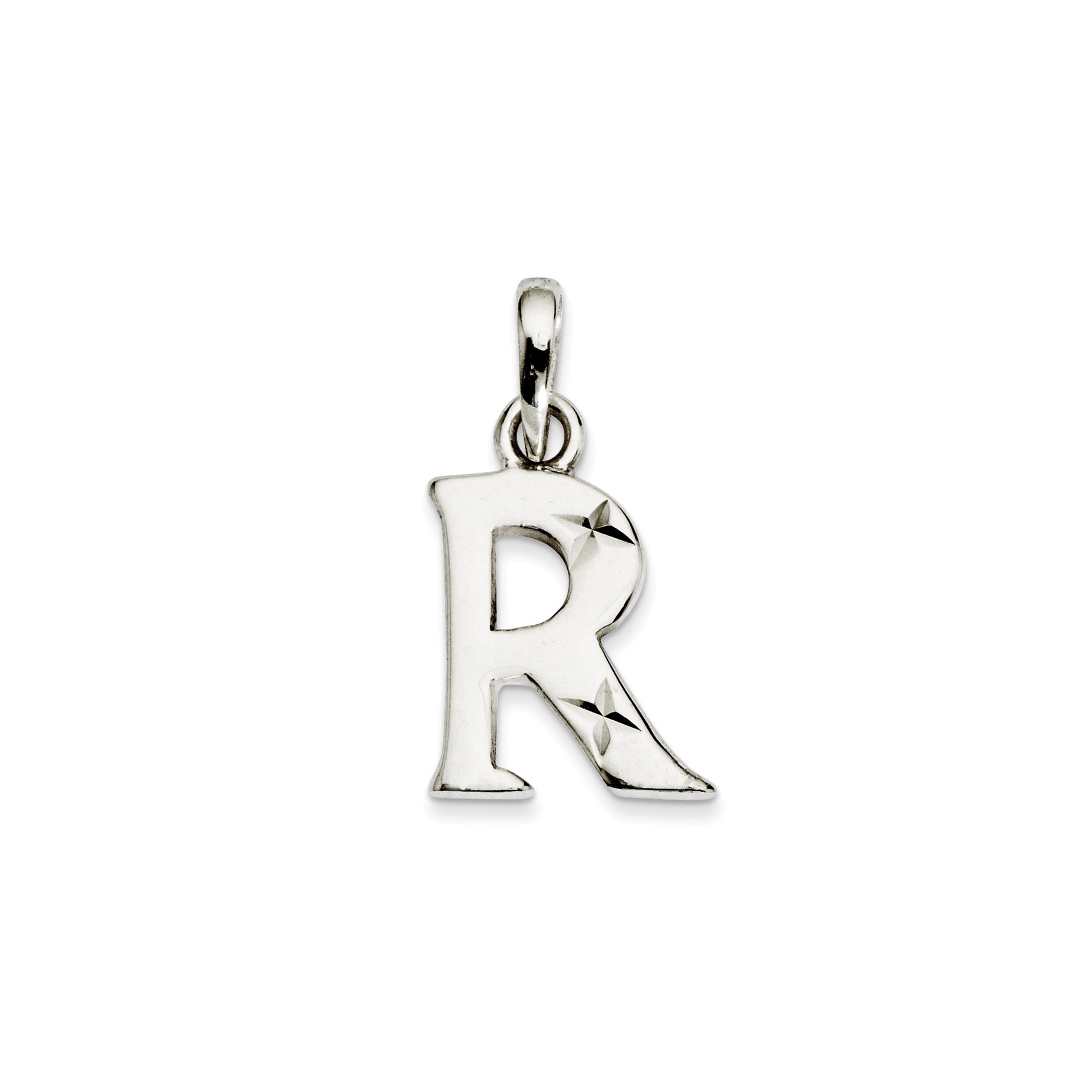Sterling Silver Polished Diamond-cut Initial R Pendant