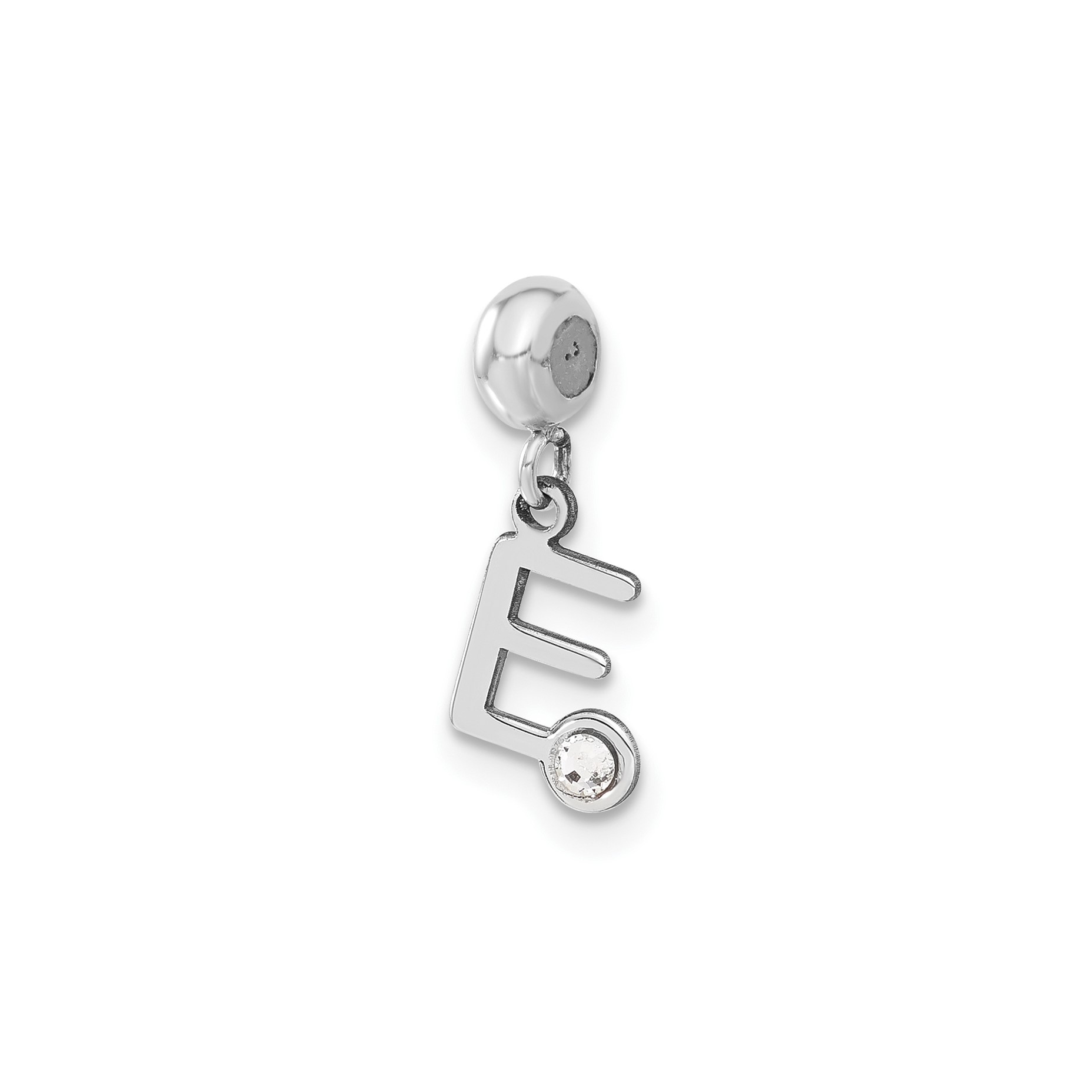 Sterling Silver Rhodium-plated MeMi Letter E with Swarovski Crystal Charm