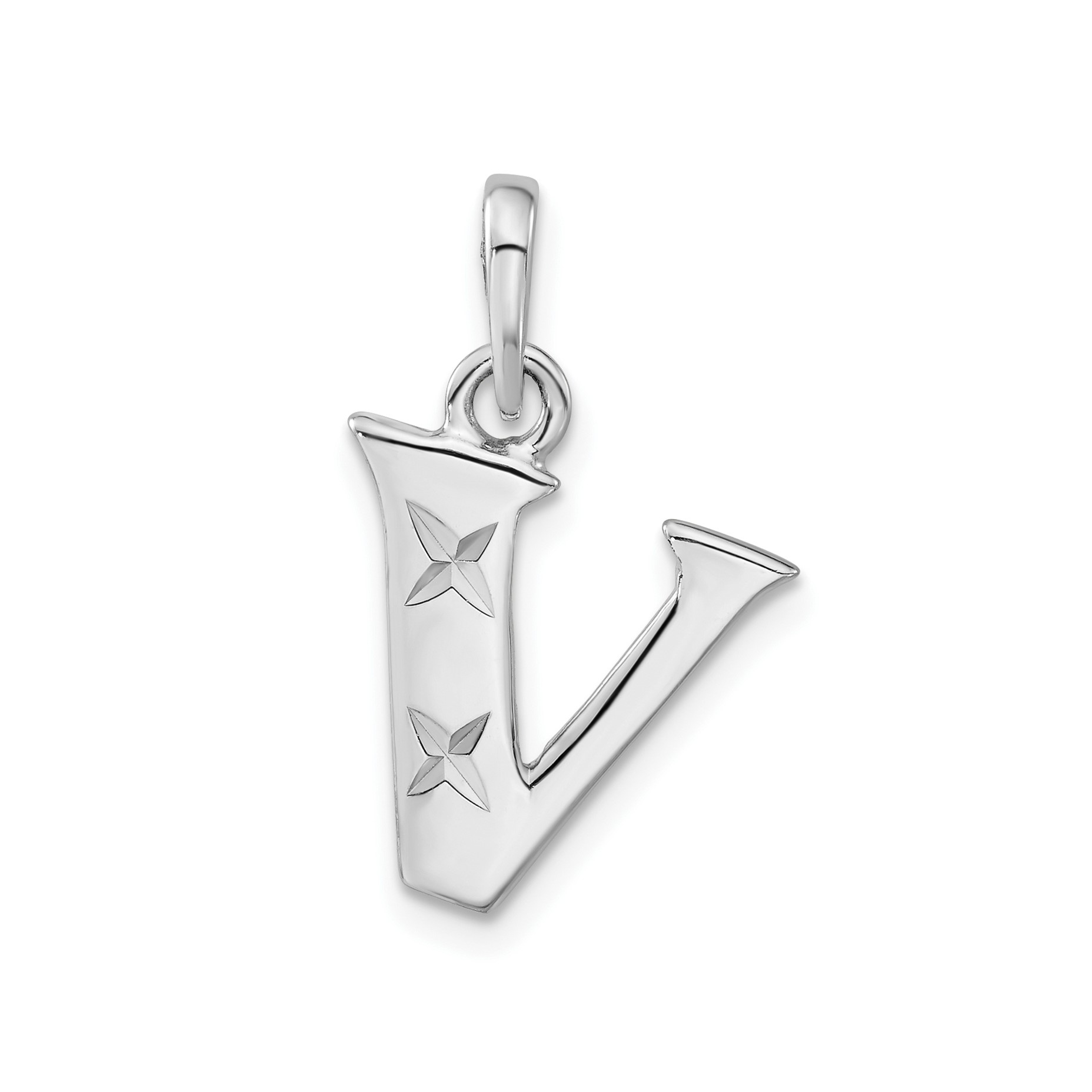 Sterling Silver Polished Diamond-cut Initial V Pendant