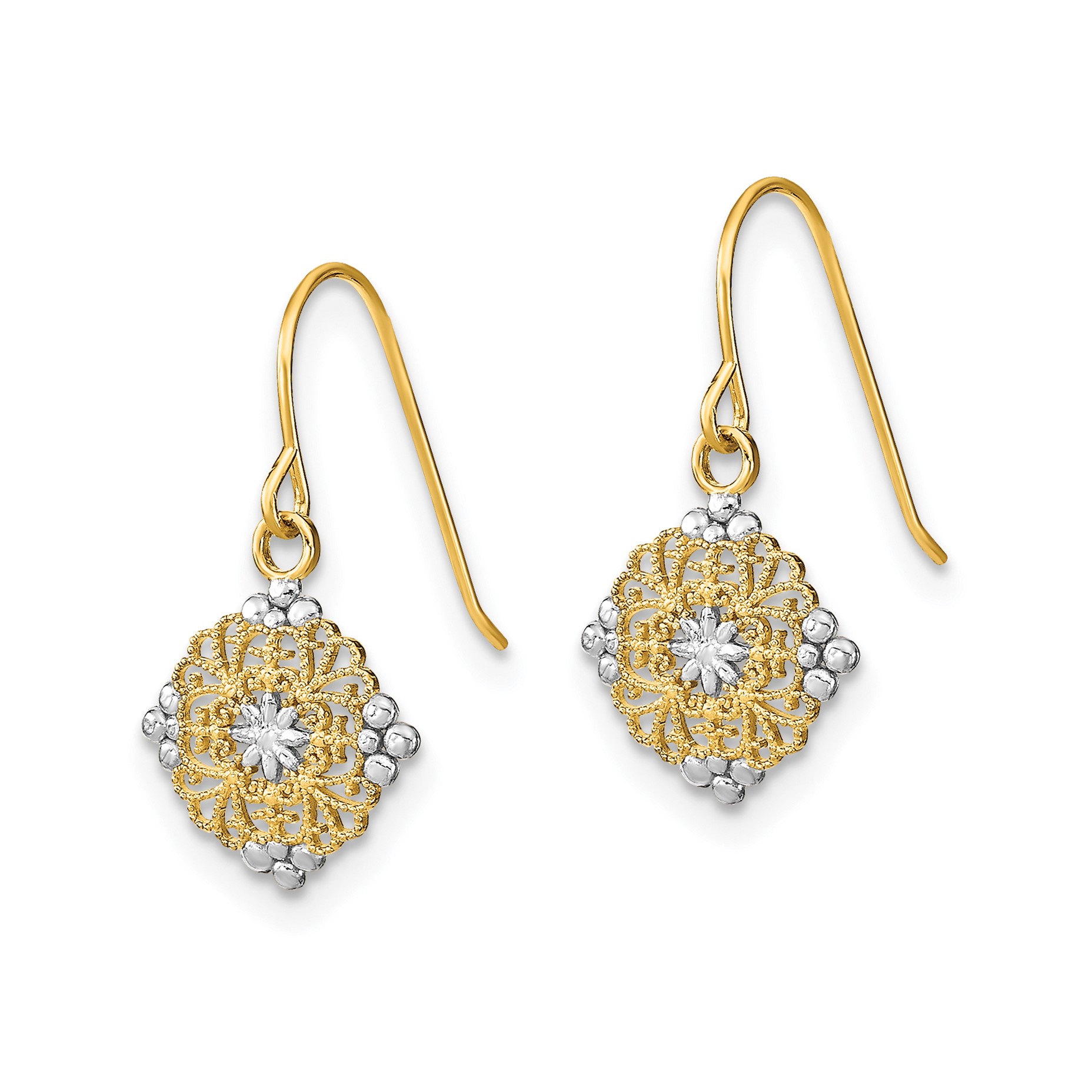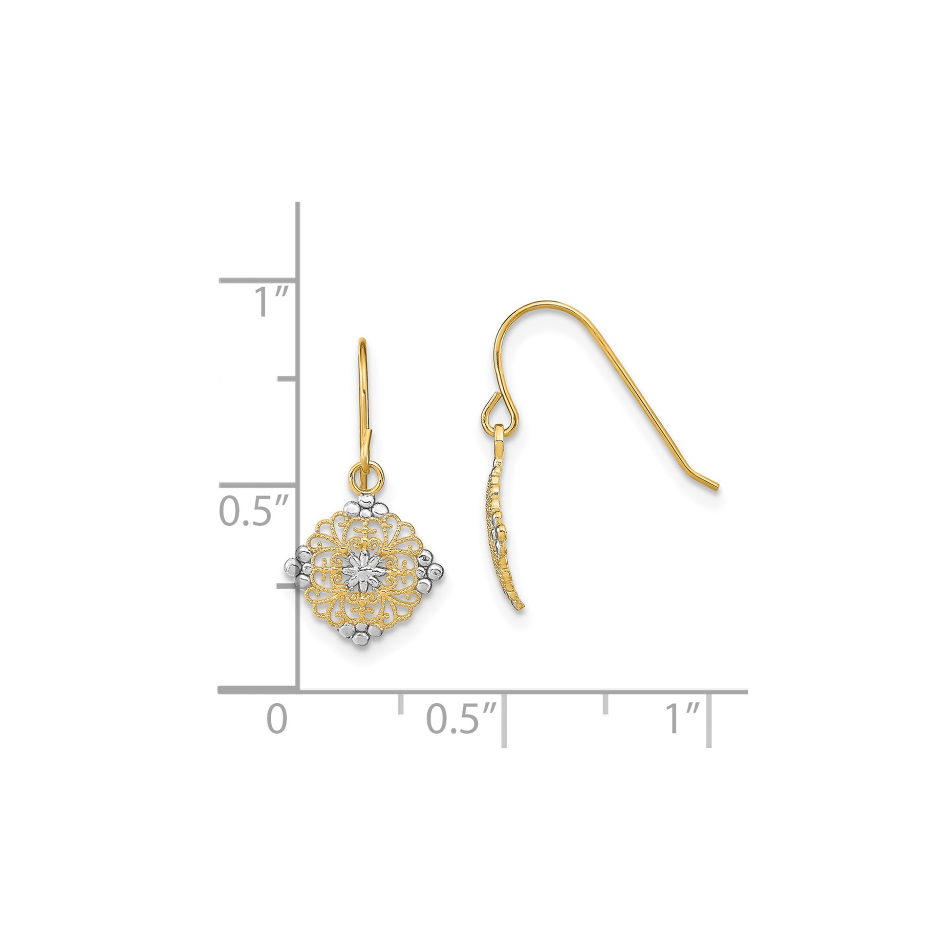 14k with RH D/C Center Mini Filigree Medallion Wire Earrings