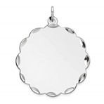 Sterling Silver Rh-plt Engraveable Polished Front/Satin Back Disc Charm