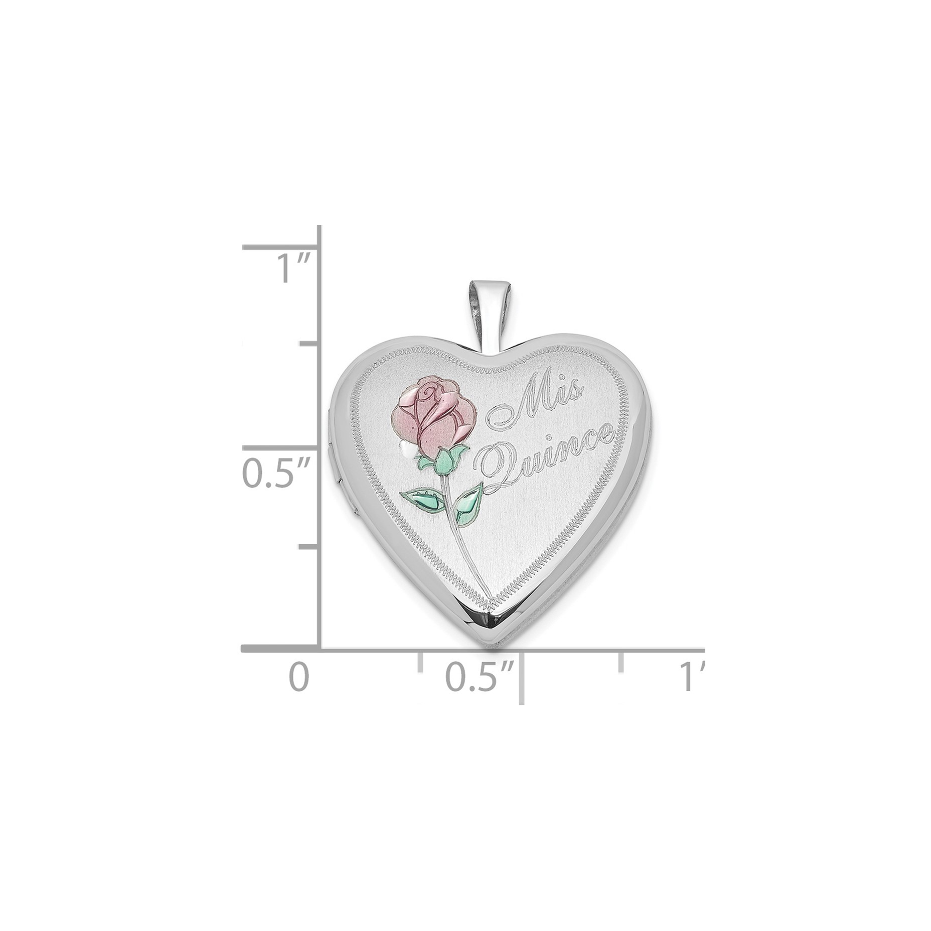 Sterling Silver 20mm Enameled Rose Mis Quince Heart Locket