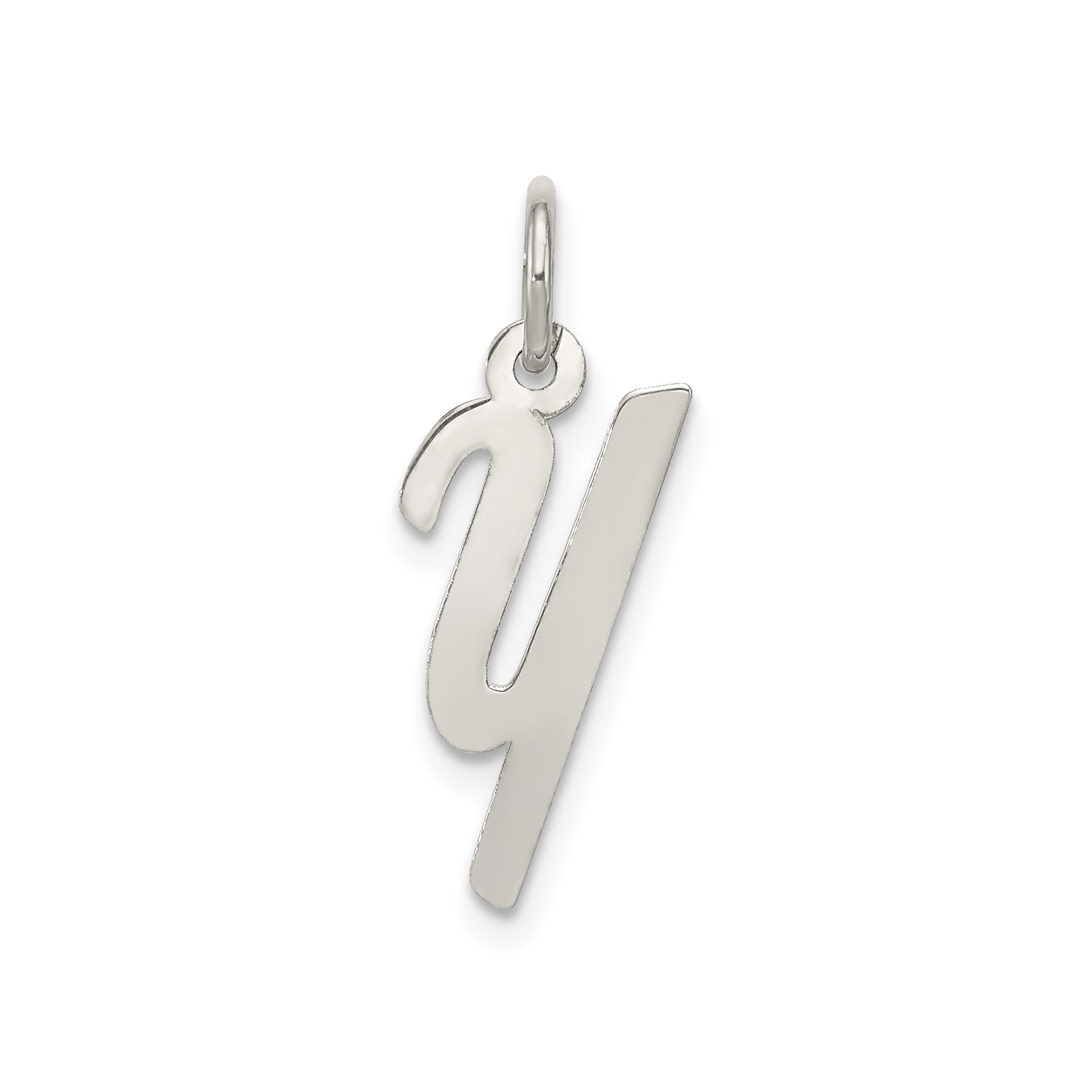 Sterling Silver Rhodium-plated Small Script Initial Y Charm