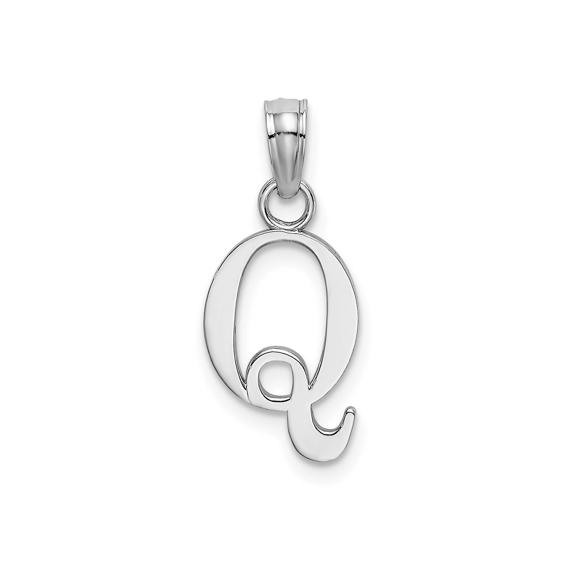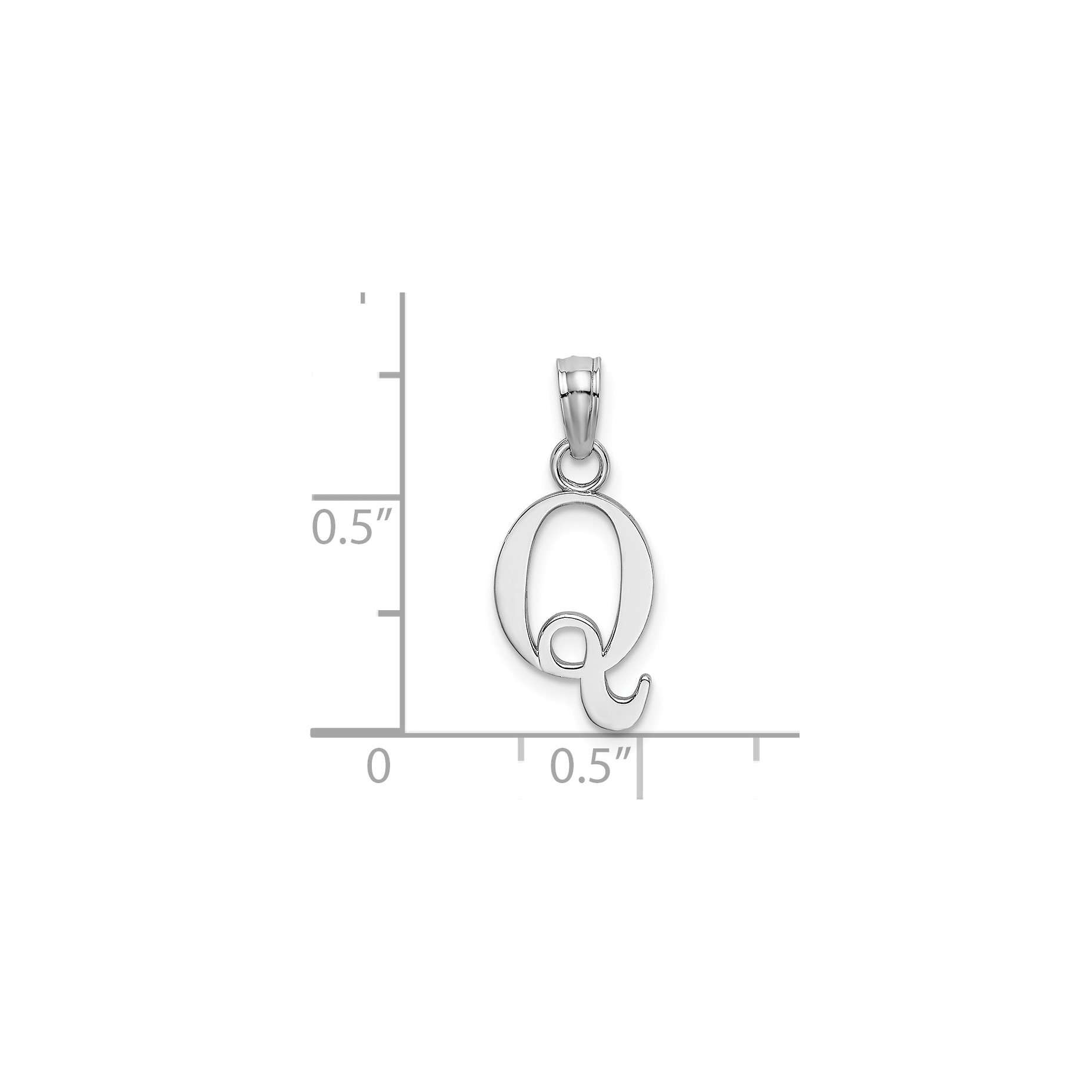 14K White Gold Polished Q Block Initial Charm