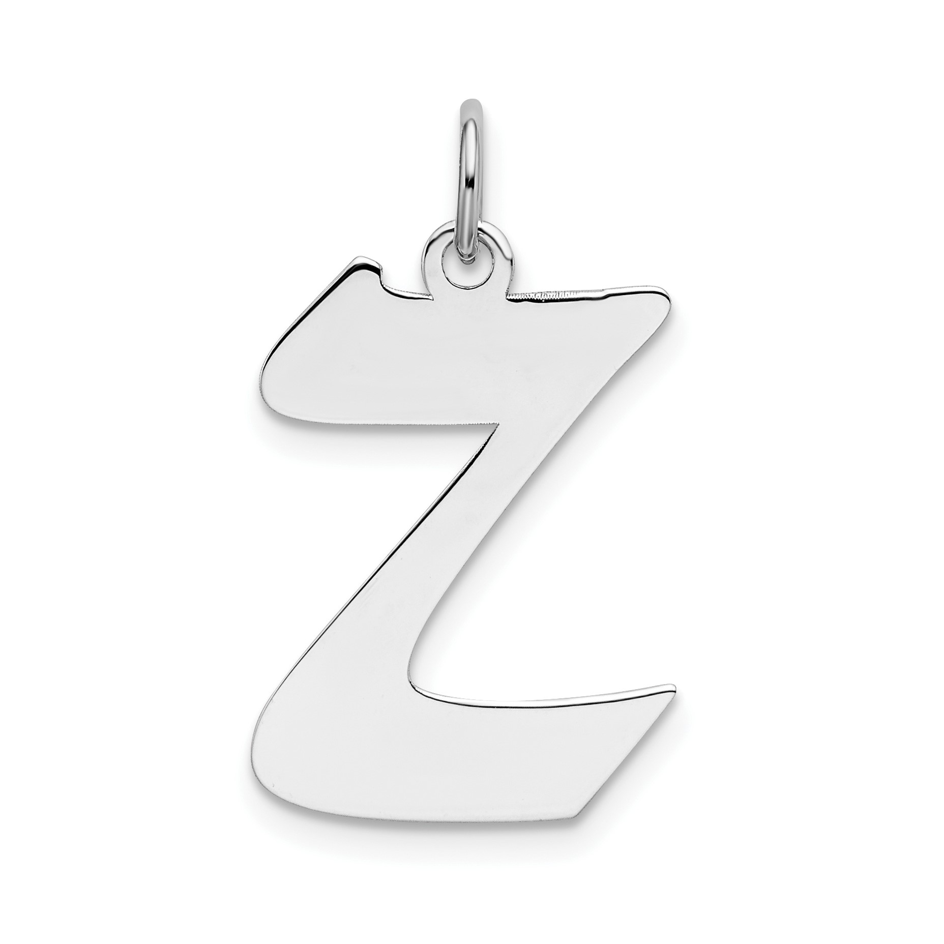 Sterling Silver Rhodium-plated Medium Artisan Block Initial Z Charm
