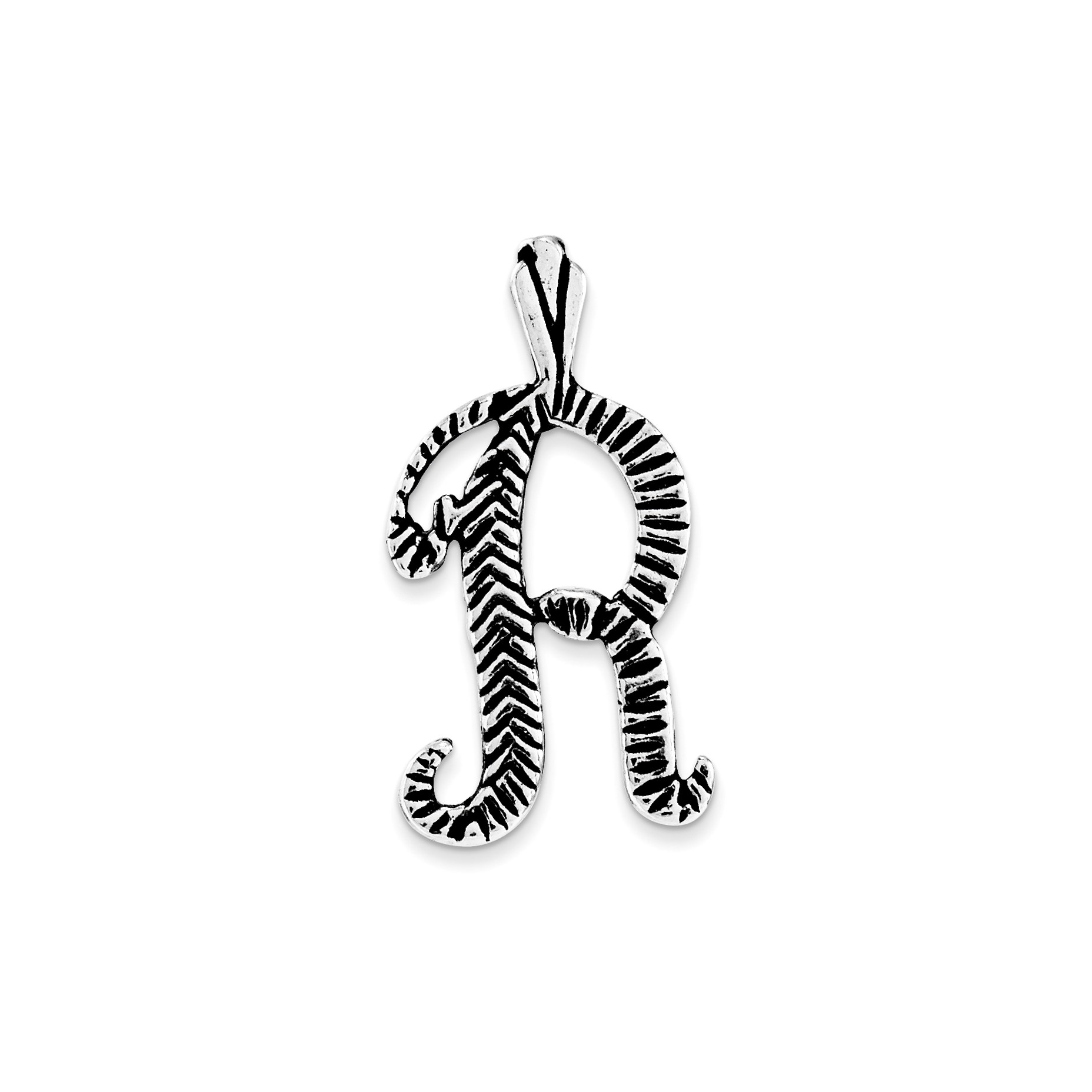 Sterling Silver Antiqued and Textured Letter R Chain Slide