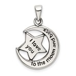 Sterling Silver LOVE YOU TO THE MOON Antiqued Star and Moon Pendant