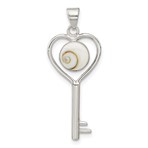 Sterling Silver Polished Shiva Eye in Heart Key Pendant